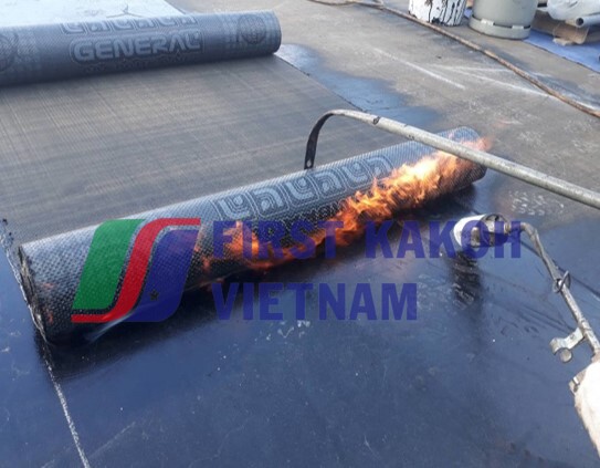 アスファルト防水では、弊社はベトナムにて一般である「トーチ工法」と呼ばれるトーチバーナーを用いて改質アスファルトシートの裏面をあぶり、下地へ貼り付ける工法を多くの物件で施工をして参りました。